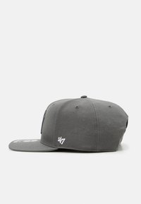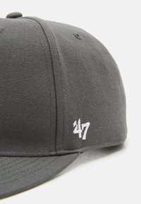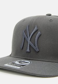 Casquette de baseball à visière plate gris foncé avec logo "NY" brodé en relief à l'avant et petit logo "47" brodé sur le côté.