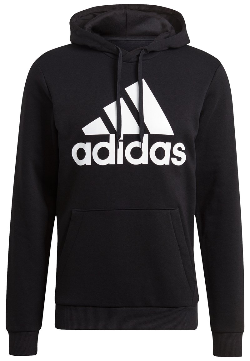 Sweat à capuche Adidas noir avec grand logo blanc, poche kangourou à l'avant, manches longues et capuche réglable avec cordon.