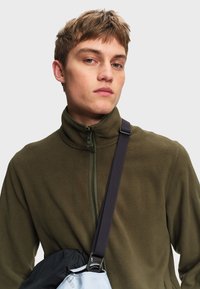 Veste polaire zippée T-KIT, essentielle du dressing hivernal masculin. Conçue pour offrir chaleur et légèreté toute l'année, elle est compatible avec toutes les pièces à manches de la collection T-KIT grâce à son système d'attache, permettant de créer une pièce 3 en 1 modulable. Elle se dote d'un col montant, de deux poches latérales zippées, d'une fermeture centrale, ainsi que de finitions biais élastiquées ton sur ton aux poignets et à la base. La broderie siglée Aigle sur la manche gauche et le logo Bird brodé en bas de manche droit apportent une touche signature.