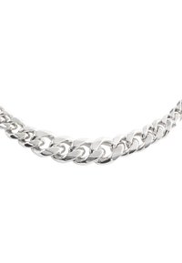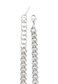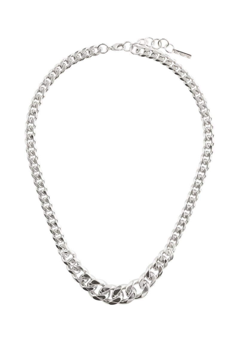 Collier en argent avec des maillons entrelacés, finition métallique brillante et fermoir réglable avec une petite chaîne d'extension.