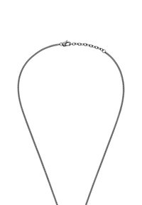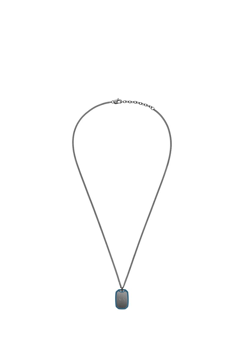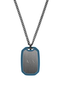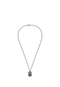 Collier chaîne en argent avec un pendentif rectangulaire bleu. Le pendentif présente une surface lisse et un détail gravé subtil.