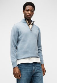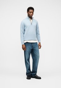 HALF ZIP KNITTED JUMPER - Pullover - dark chambray