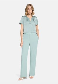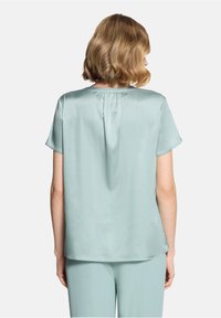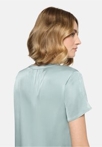 Chemisier décontracté en satin avec manches mi-longues et décolleté en V féminin. Le tissu fluide assure un confort agréable, tandis que l'aspect uni apporte une légèreté élégante au look décontracté - sans aucune fermeture.