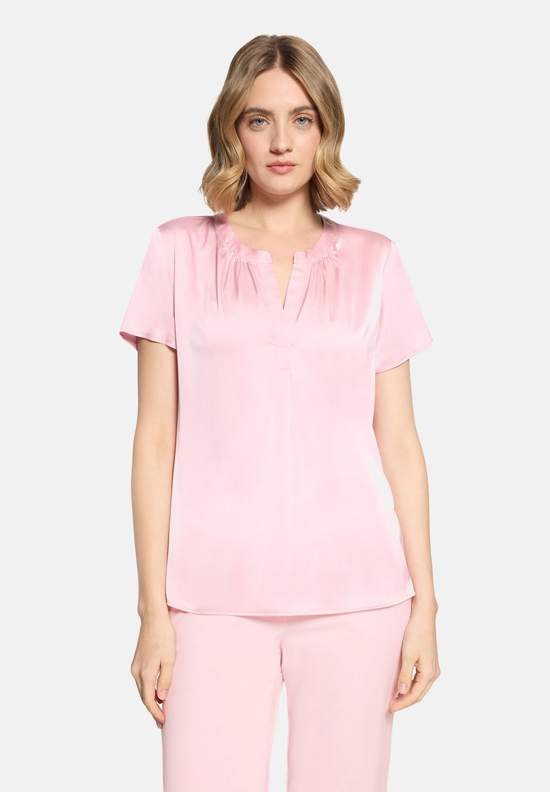 Chemisier décontracté en satin avec manches mi-longues et décolleté en V féminin. Le matériau fluide assure un confort agréable, tandis que l'aspect uni confère une légèreté élégante au look décontracté – sans aucune fermeture.