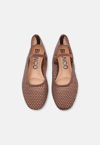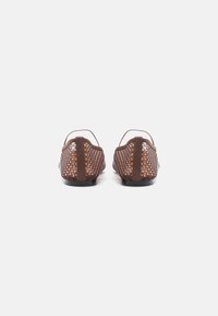 Chaussure plate tissée marron avec un bout rond, dotée d'une fine bride élastique, d'une surface texturée et d'une semelle fine noire.