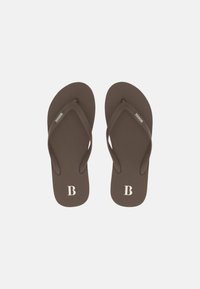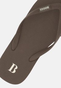 Sandale tong marron avec semelle intérieure texturée, semelle blanche et fines brides, présentée sur fond blanc.