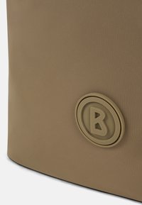 Sac fourre-tout kaki avec double poignée, fermeture éclair et sangles côtelées. Présente un logo rond à l'avant et un matériau lisse et durable.