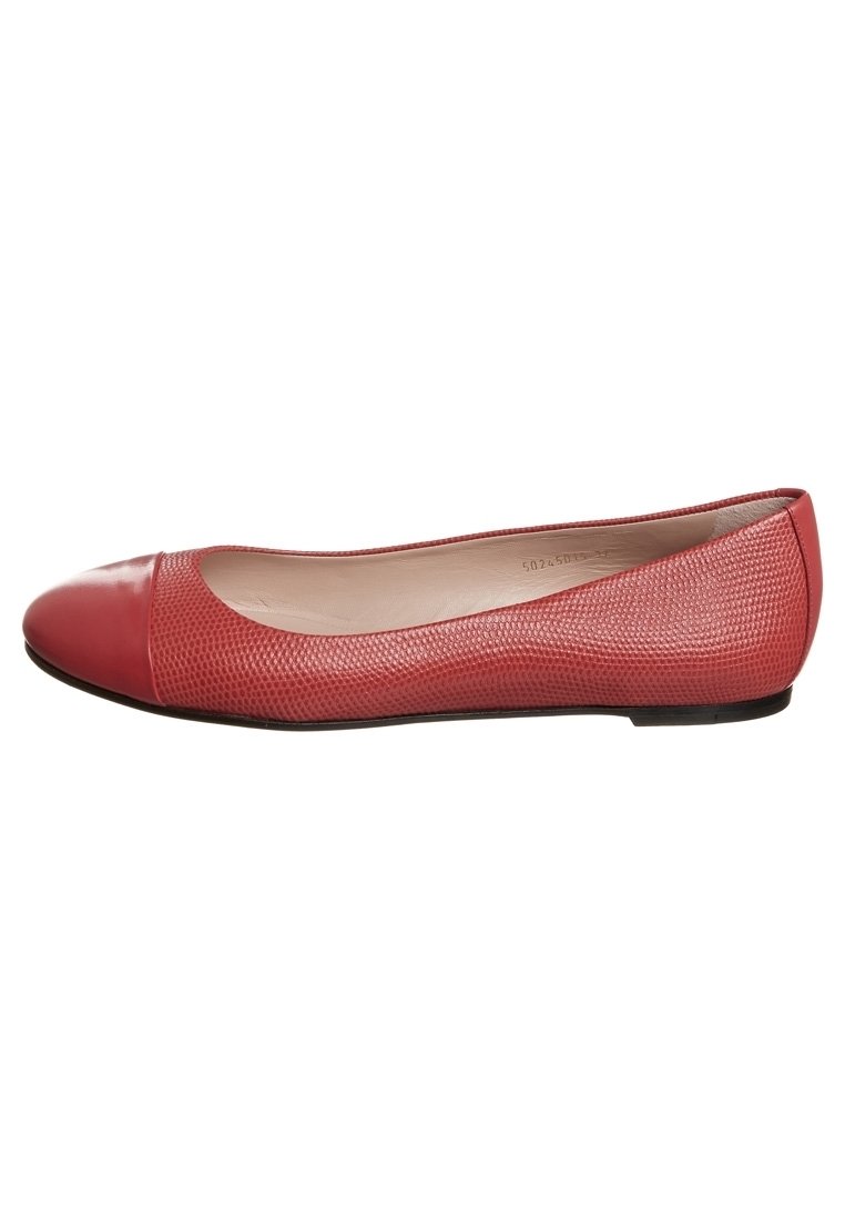 Ballerines rouges avec une tige en cuir à la fois texturée et lisse. Bout arrondi et design discret. Semelle en caoutchouc flexible pour un confort optimal.