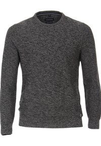 Pull en maille gris foncé à manches longues pour hommes, avec col rond et texture marbrée subtile, de la marque Casa Moda, taille M.