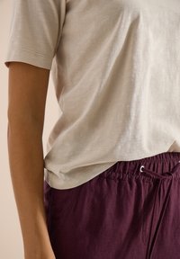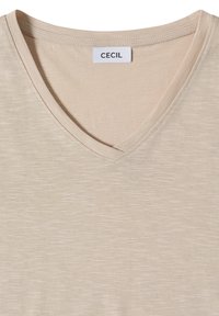 BASIC T-SHIRT MIT V-NECK - T-shirt basique - grain beige