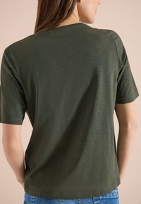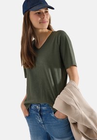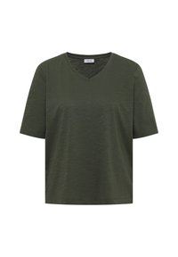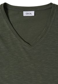BASIC T-SHIRT MIT V-NECK - T-shirt basique - khaki