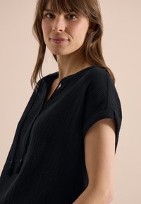 BLUSE MIT SPLIT NECK AUS MUSSELINSTOFF - Blouse - black