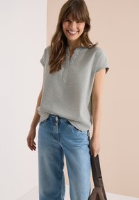 BLUSE MIT SPLIT NECK IN SEERSUCKERQUALITÄT - Blouse - khaki