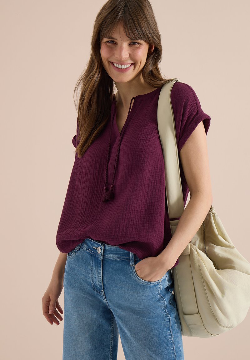 BLUSE MIT SPLIT NECK AUS MUSSELINSTOFF - Blouse - sweet grape red
