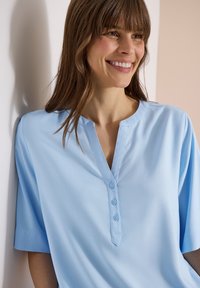 BLUSE MIT SPLIT NECK UND ELASTIKSAUM - Blouse - light sky blue