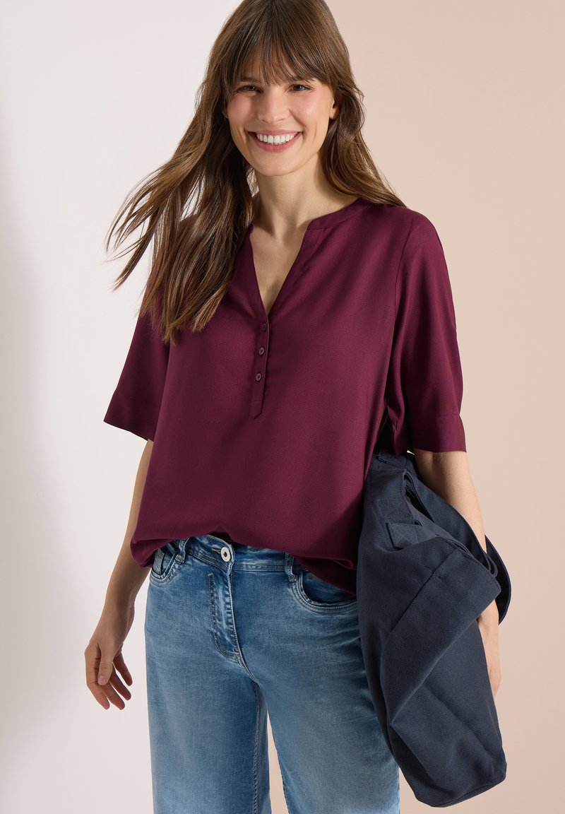 BLUSE MIT SPLIT NECK UND ELASTIKSAUM - Blouse - sweet grape red