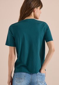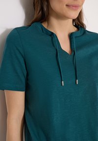 KURZARM SHIRT MIT SPLIT NECK - T-shirt basique - jungle green