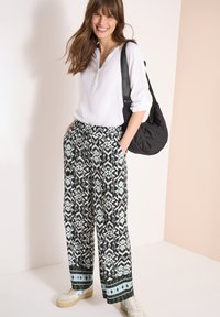 WIDE LEG HOSE IM LOOSE FIT MIT PRINT - Pantalon classique - khaki