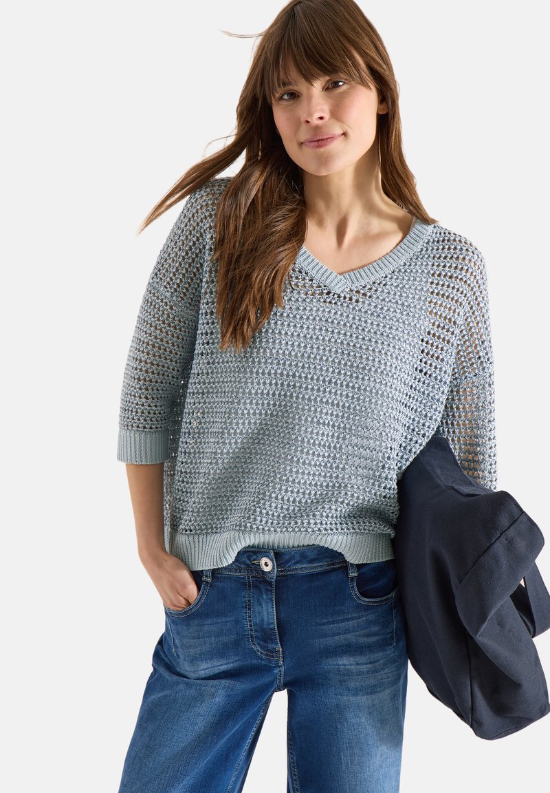 PULLOVER MIT V-NECK UND GARNMIX - Pullover - diamond blue
