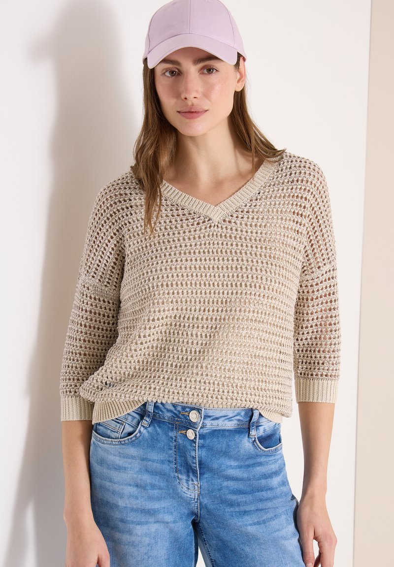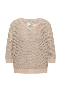 PULLOVER MIT V-NECK UND GARNMIX - Pullover - pearl beige