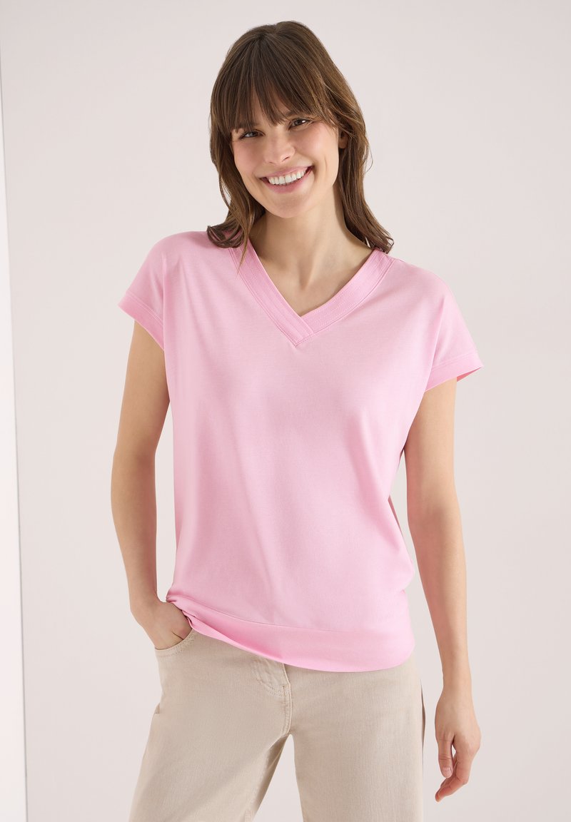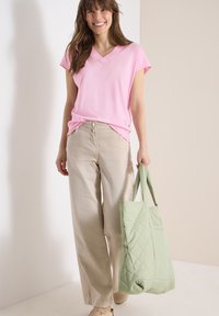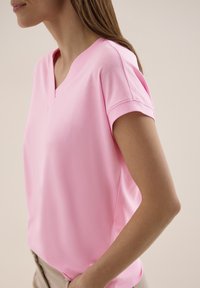KURZARM SHIRT MIT V-NECK IN UNIFARBE - T-shirt basique - light blush rose