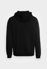 Sweat à capuche zippé noir avec cordons, poches avant et logo Converse blanc sur la poitrine gauche sur un fond uni.
