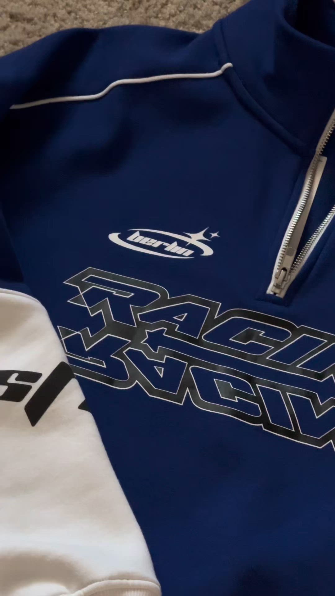 heart_outlinedYOURTURNUNISEX RELAXED FIT RACER QUARTER-ZIP SWEATSHIRT - Sweatshirt - black/blue39,99 €