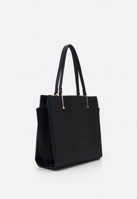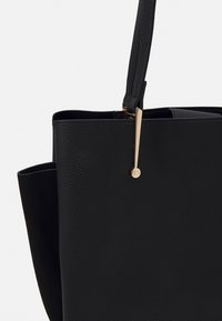 Sac cabas structuré noir avec deux longues anses et ferrures couleur or, présentant le logo "Dune" au centre avant.