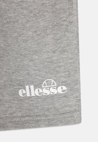 Shorts en tricot de coton gris clair avec une ceinture élastique et un petit logo blanc "ellesse" sur la partie inférieure de la jambe droite.