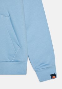 Sweat à capuche bleu clair avec poche kangourou à l'avant et petit logo ellesse sur la poitrine et le poignet de la manche.