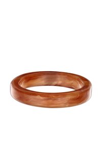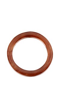 Bracelet manchette large en résine couleur ambre lisse, avec une finition brillante et un motif marbré subtil, présenté sur un fond blanc.