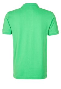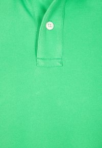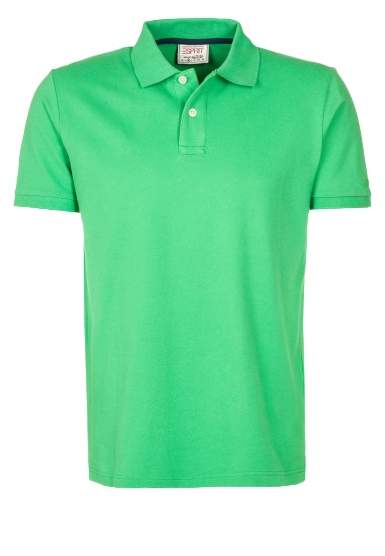 Chemise polo verte en coton avec un col classique, patte de boutonnage à trois boutons et manches courtes. Texture lisse, design décontracté.