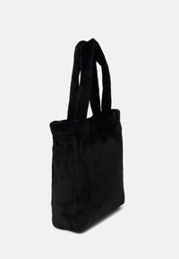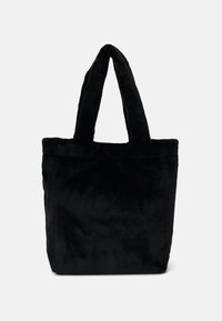 Sac fourre-tout en tissu noir doux avec poignées rembourrées, forme rectangulaire et design minimaliste sur fond blanc.