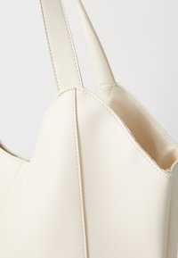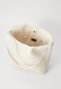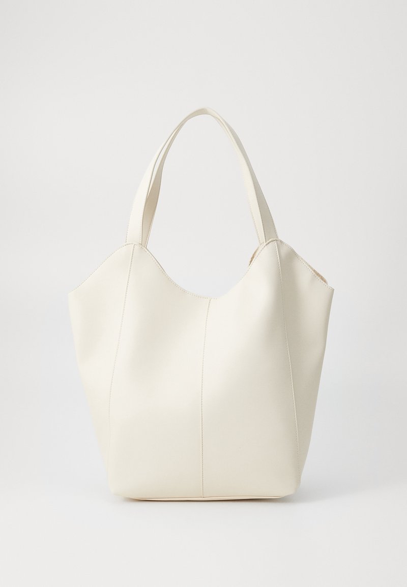 Sac cabas en cuir souple couleur crème avec deux anses, coutures apparentes et bord supérieur légèrement incurvé, posé sur un fond blanc uni.