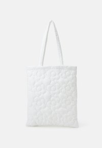 Sac cabas blanc matelassé avec motif floral, doté de deux poignées en tissu robustes et d'une texture douce et rembourrée sur toute la surface.