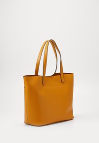 Sac fourre-tout jaune avec deux longues anses, fabriqué en matériau lisse. Présente un design minimaliste et un détail de couture subtil.