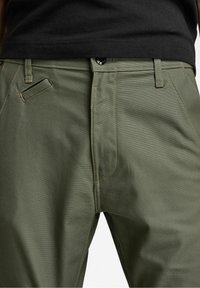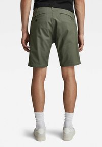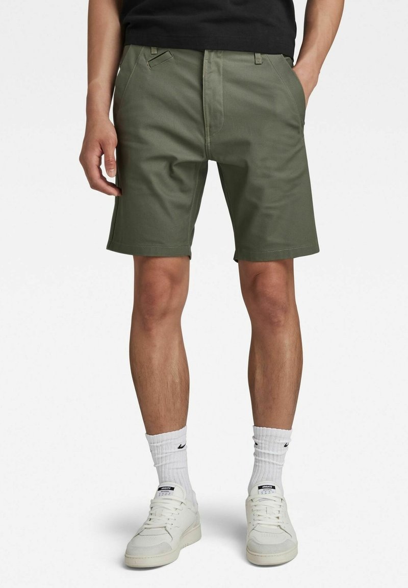 Shorts vert olive en mélange de coton ; présentant une coupe droite, deux poches avant et un design à front plat. Convient pour un usage décontracté.
