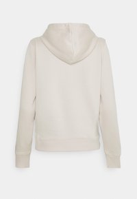 Sweat à capuche beige avec poche kangourou à l'avant, cordons blancs, et logo GANT orange centré sur la poitrine, présenté sur fond blanc.