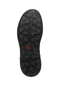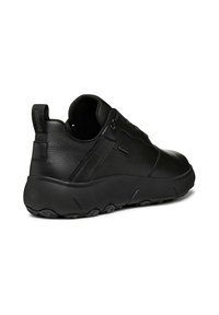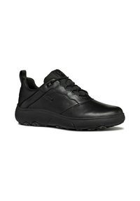 Baskets basses en cuir noir avec fermeture à lacets, semelle épaisse et col rembourré, présentées de profil sur fond blanc.