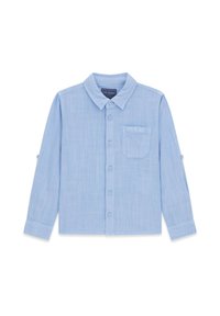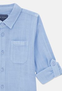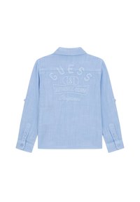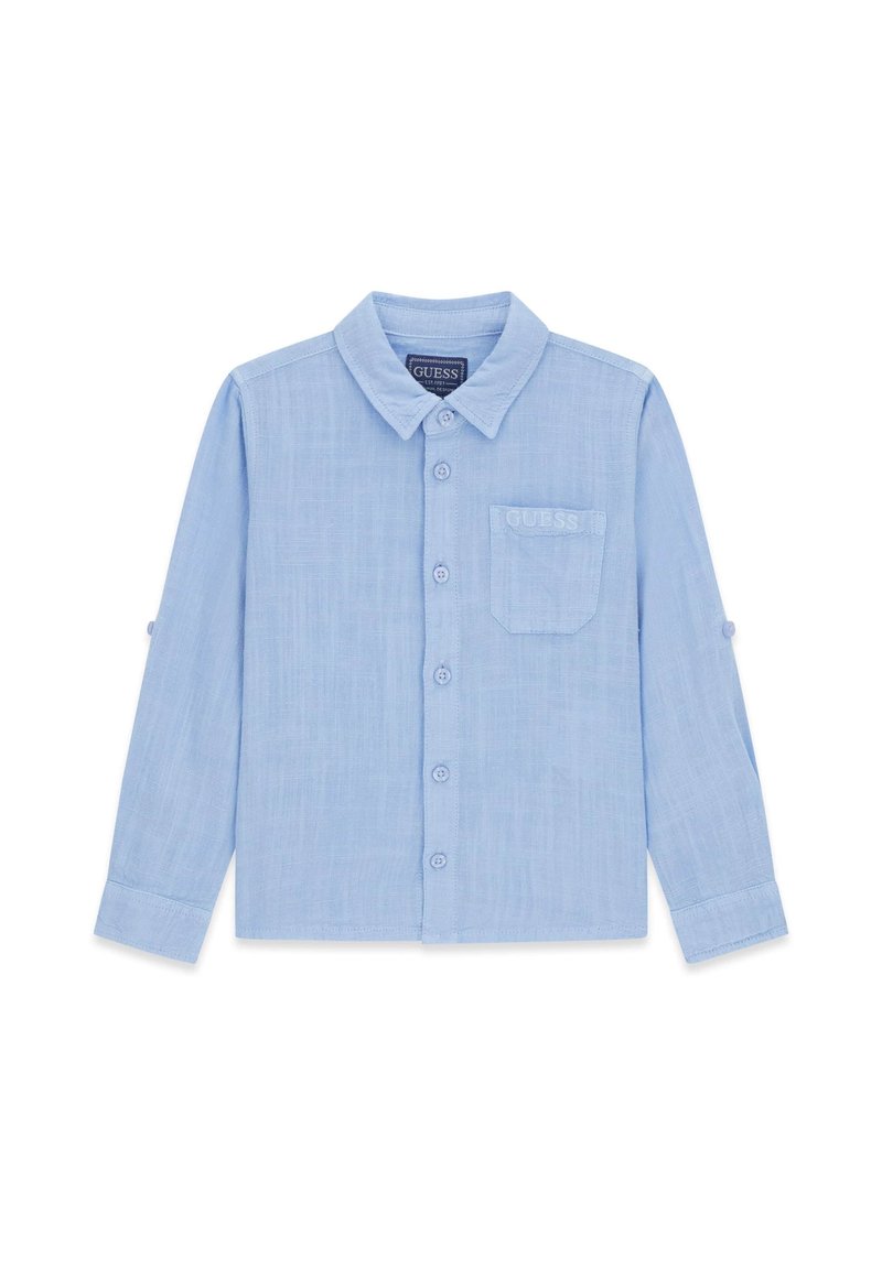 Chemise bleu clair à manches longues, boutonnée, avec col et poche poitrine brodée du logo "GUESS".