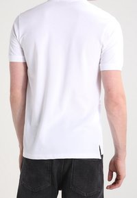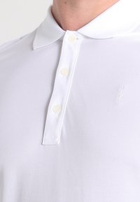 Polo blanc en tissu lisse, doté d'un col classique, d'une patte à deux boutons et de manches courtes. Design minimaliste avec un branding discret.