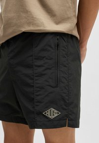 Shorts de bain noirs avec une ceinture élastique. Fabriqués en matière légère, ils disposent de poches latérales et d'un petit logo sur l'ourlet.