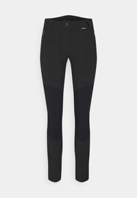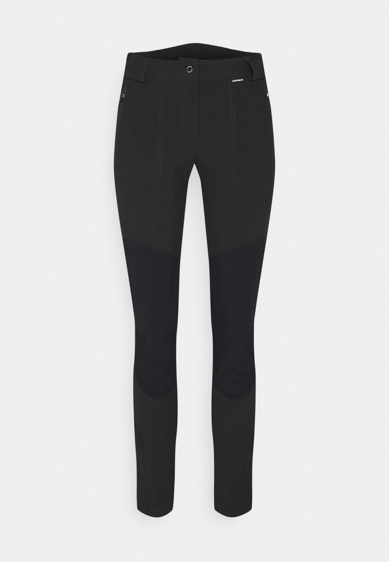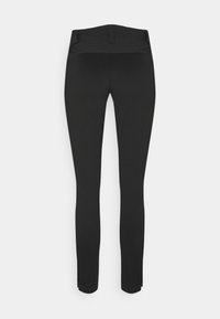 Pantalons d'équitation noirs à coupe slim, dotés d'une ceinture texturée, de panneaux de genoux contrastants et de détails de couture subtils.
