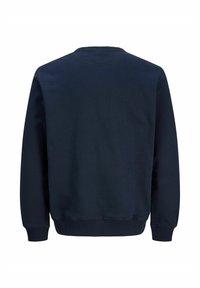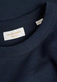Sweatshirt bleu marine en coton doux, avec des manches longues, un col côtelé et un logo brodé en or à l'avant.