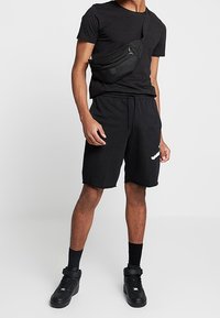 Shorts en coton noir avec un logo Jumpman blanc, dotés d'une taille à cordon, de poches latérales et d'une coupe décontractée.