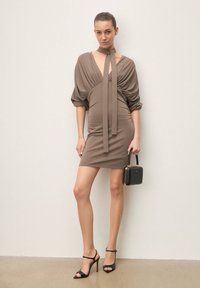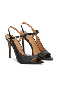 Les sandales beiges en cuir naturel de haute qualité séduisent par leur douceur et leur durabilité. Le modèle se caractérise par une empeigne découpée qui expose subtilement le pied, ajoutant légèreté et charme féminin. La bride autour de la cheville offre non seulement de la stabilité, mais souligne également la ligne délicate de la jambe. Une fermeture à boucle subtile permet d'ajuster précisément la chaussure. Le bout pointu ouvert donne à la sandale une touche moderne, tout en exposant les orteils avec élégance. Le talon aiguille fin et haut soulève doucement la silhouette, allonge visuellement les jambes et ajoute une touche de chic sophistiqué à l'ensemble du look. Ces sandales seront un complément parfait aux tenues élégantes de soirée, et souligneront également l'unicité d'ensembles plus décontractés, offrant confort et allure unique. Un choix idéal pour les célébrations estivales et les occasions importantes.
