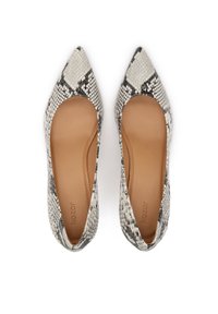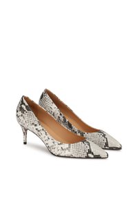 Fabriquées en cuir de haute qualité gaufré de monogrammes KAZAR et d'un motif animalier, ces escarpins sont une chaussure unique et élégante qui présente une combinaison exceptionnelle de design et de luxe. Les monogrammes gaufrés soulignent subtilement le prestige de la marque, tandis que le motif animalier ajoute une touche audacieuse et à la mode aux chaussures, créant un look distinct et frappant. Les escarpins ont un talon bas sous forme d'un fin talon aiguille, qui offre à la fois confort et élégance, parfait pour le style quotidien ainsi que pour des occasions plus formelles. Le bout pointu ajoute un style classique et sophistiqué aux chaussures, allongeant optiquement les jambes et soulignant la finesse du pied. Les escarpins présentés sont un choix idéal pour les femmes qui apprécient un design unique, des détails luxueux et le confort en un seul produit.
