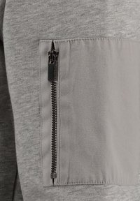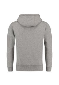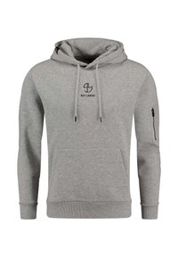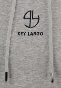 Sweat à capuche gris clair avec cordons, poche avant, logo "Key Largo" noir sur la poitrine et poche zippée sur la manche gauche.