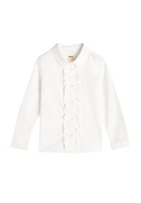 Chemise blanche à manches longues avec une patte de boutonnage froncée, fermeture à boutons et col classique. Fabriquée en tissu lisse et léger.