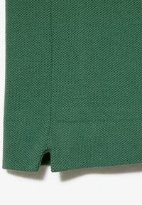 Polo vert en tissu texturé, avec un col, deux boutons et un petit logo brodé sur la poitrine.